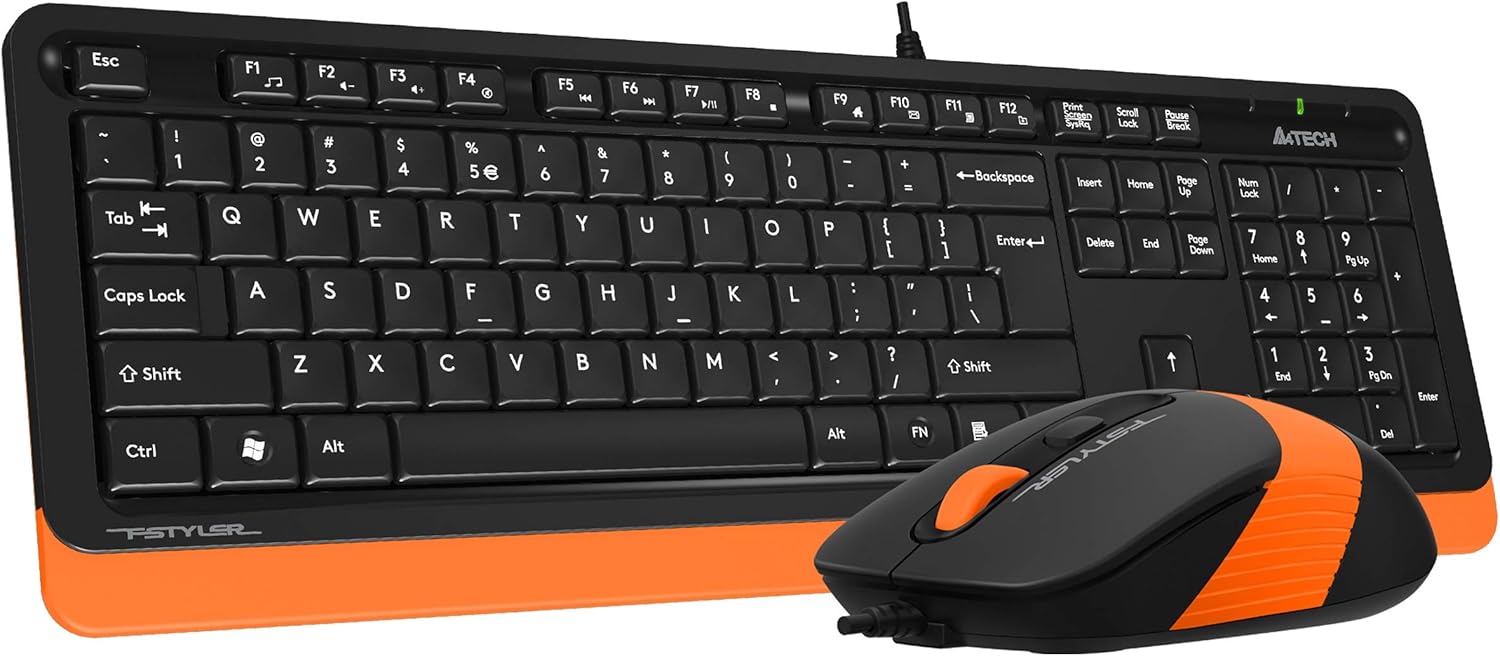 A4 Tech F1010 Turuncu Klavye + Mouse Set, ofis ve günlük kullanım için tasarlanmış kablolu USB bağlantılı ekonomik bir çözümdür. Türkçe Q tuş dizilimi ve ergonomik yapısı sayesinde uzun süreli kullanımda konfor sunar.